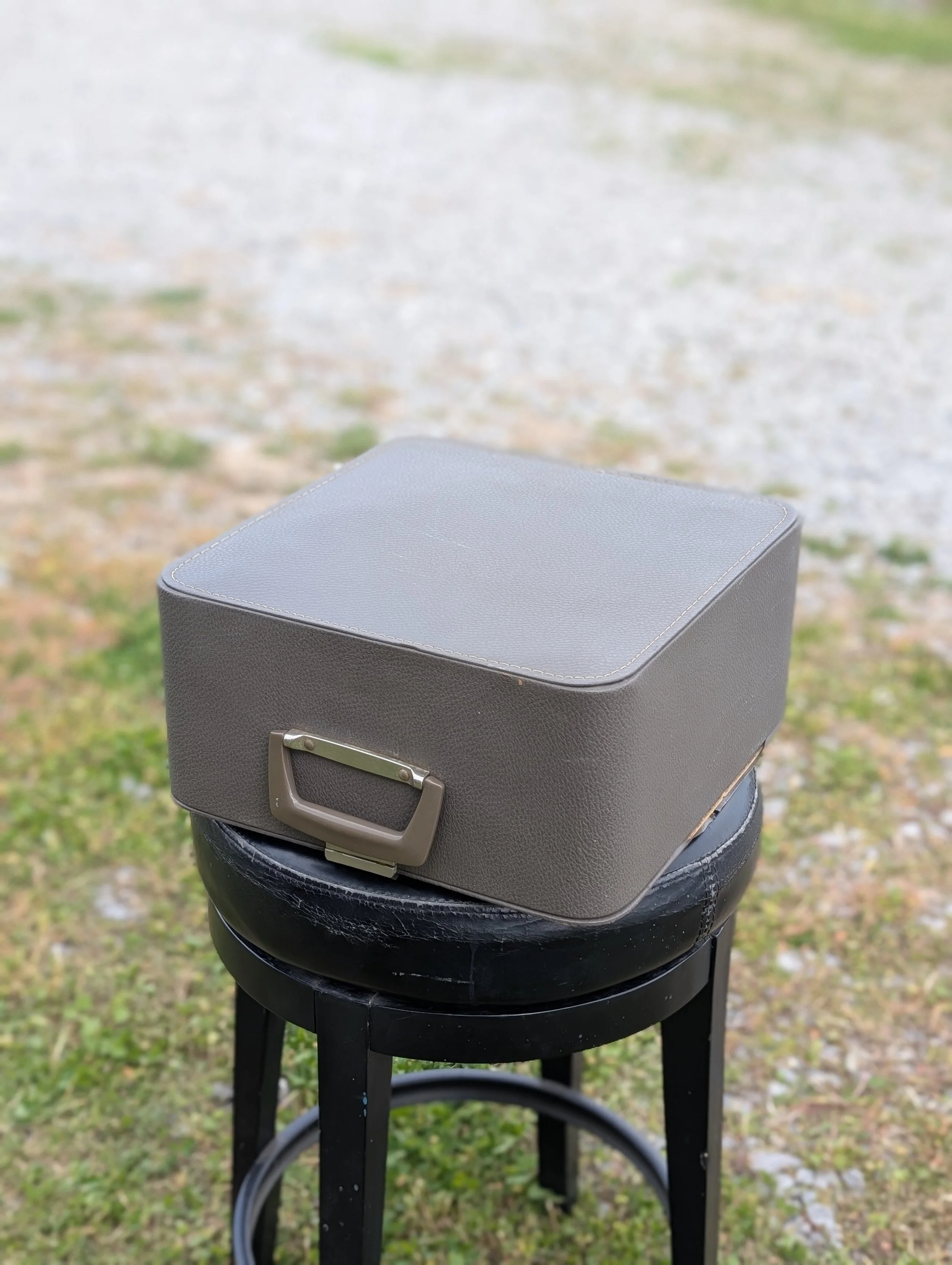 The case is in good shape as well, it’s one of the later gray cases with a leatherette cover.