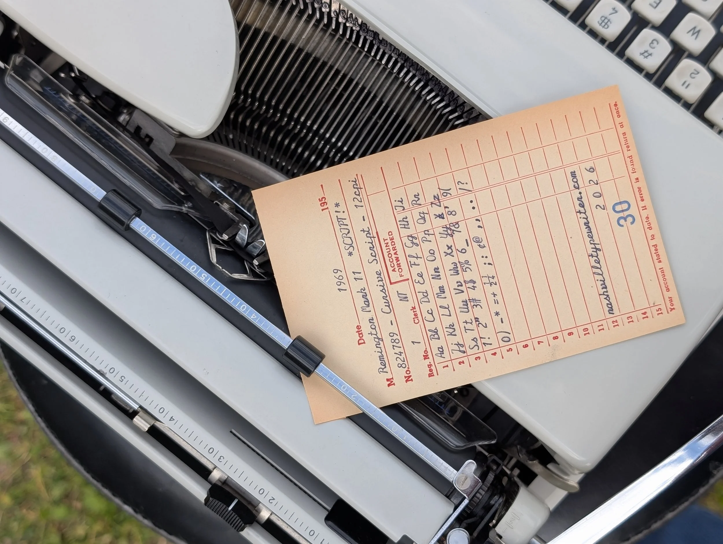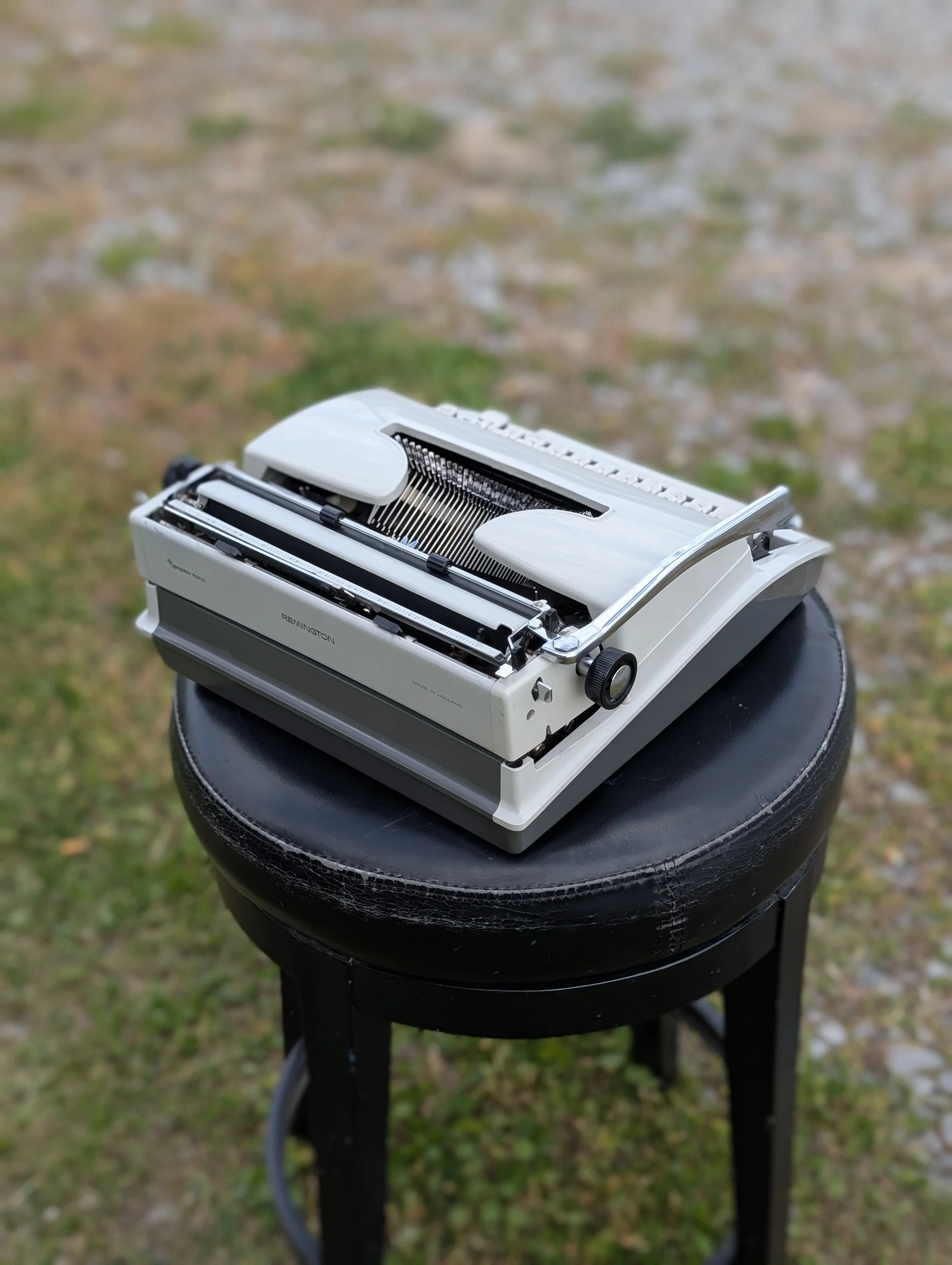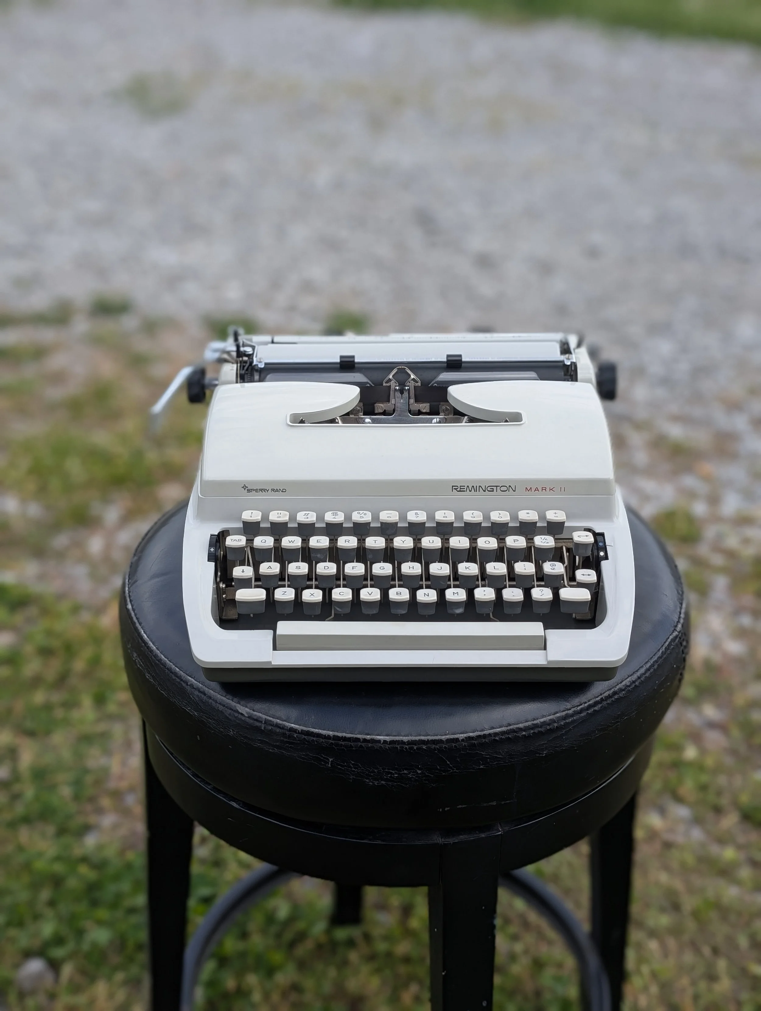 A brand spankin' new solid black or bichrome red/black ribbon on vintage Remington spools(installed), a reprinted original owners manual, the typewriter & case, an OFFICIAL Nashville Typewriter sticker and hand-typed note from me, the typeface text sample, and even a few sheets of paper to get you started on the path to analog independence and distraction free writing!