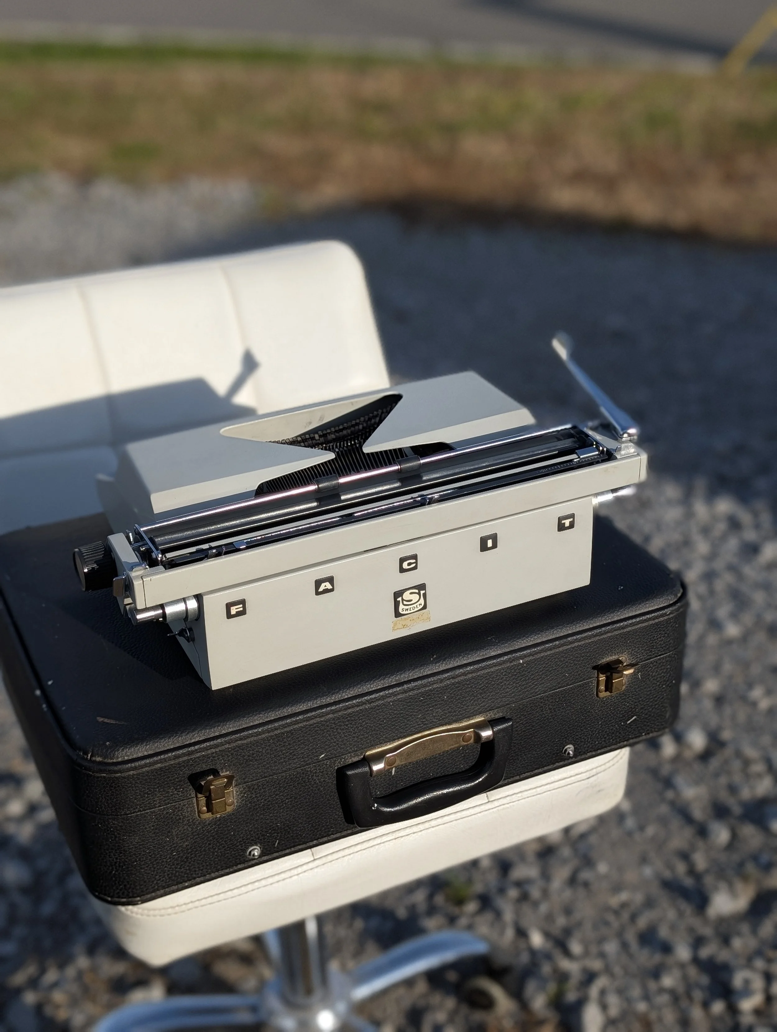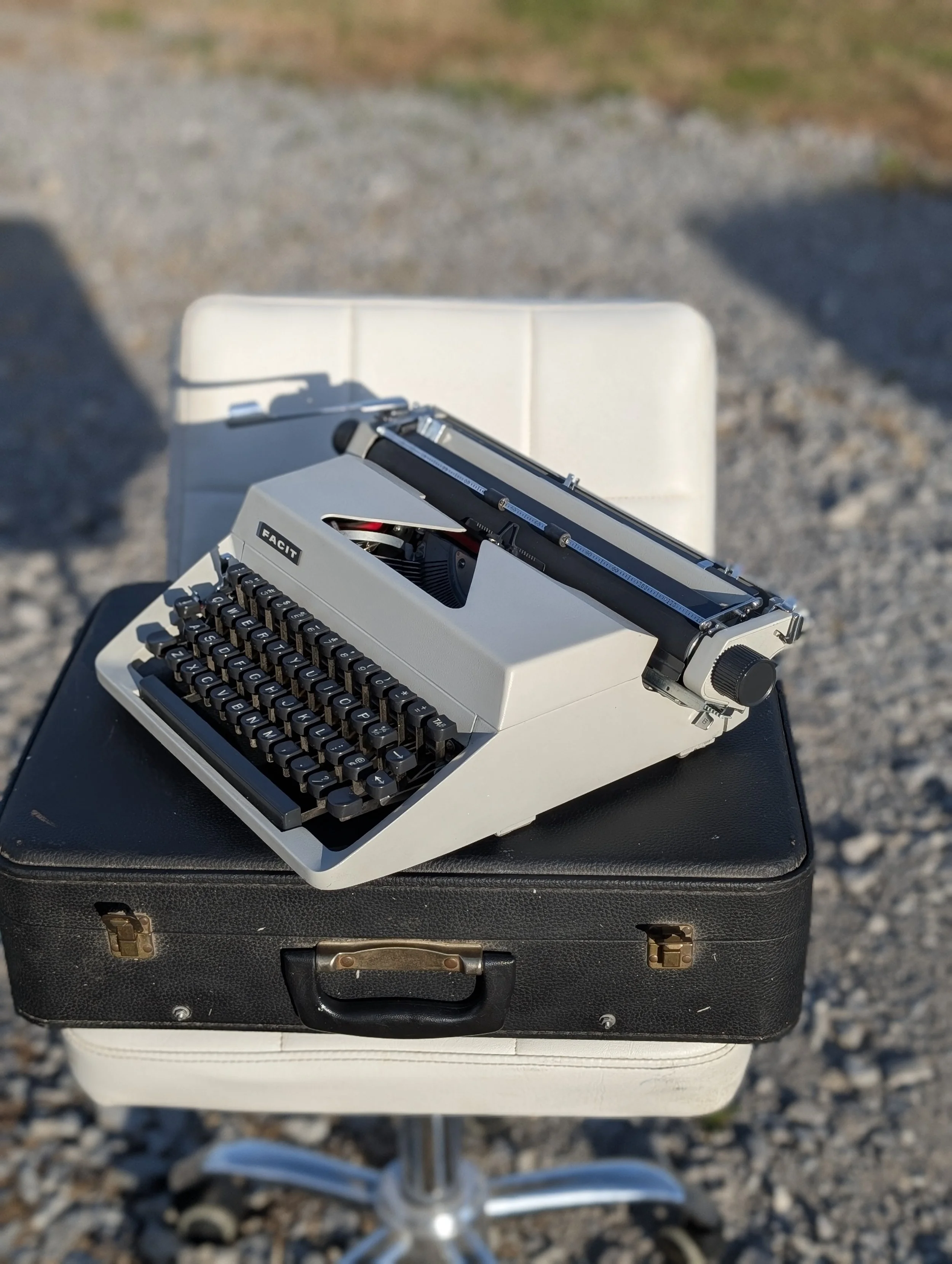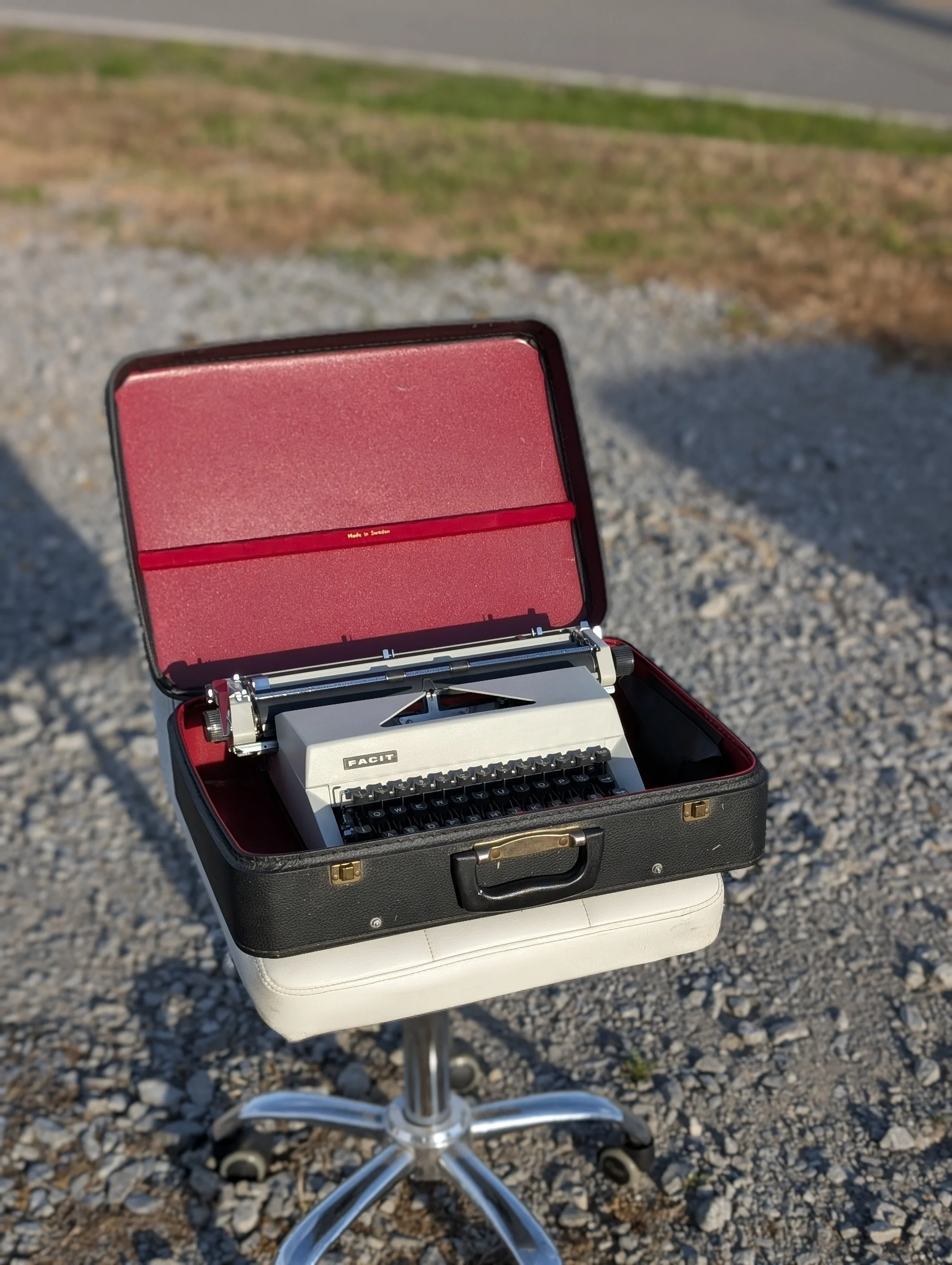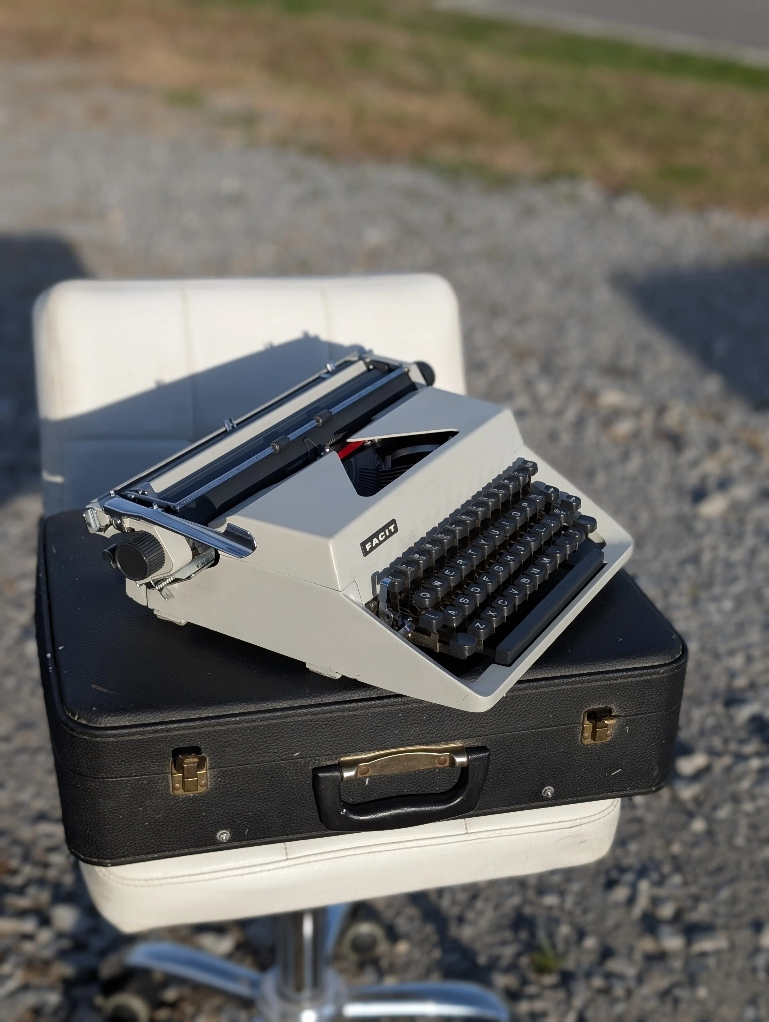 YOUR CHOICE of a brand spankin' new solid black, or bichrome (red/black) ribbon available in cotton or nylon on vintage Smith Corona specific metal spools(installed), a reprinted original owners manual, the typewriter, its handsome case & key, an OFFICIAL Nashville Typewriter sticker and hand-typed note from me, the typeface text sample, and even a few sheets of paper to get you started on the path to analog independence and distraction free writing!